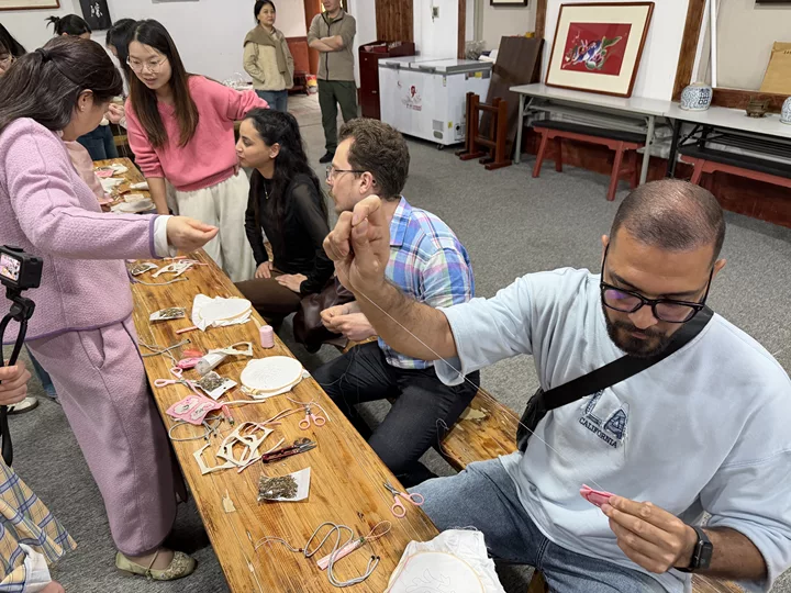 近日,国际交流处组织外籍教师走进常德桃花源,开展非遗文化与民俗体验活动,让国际友人近距离感受中华优秀传统文化与湖湘风情。 外教们在非遗传承人的现场指导下,学习桃源绣的经典针法,在穿针…